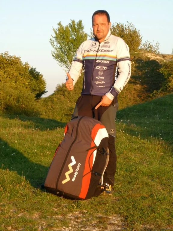Stolzer Gewinner eines Gleitschirm-Gurtzeug - man war mal erfolgreicher Streckenflieger :-)